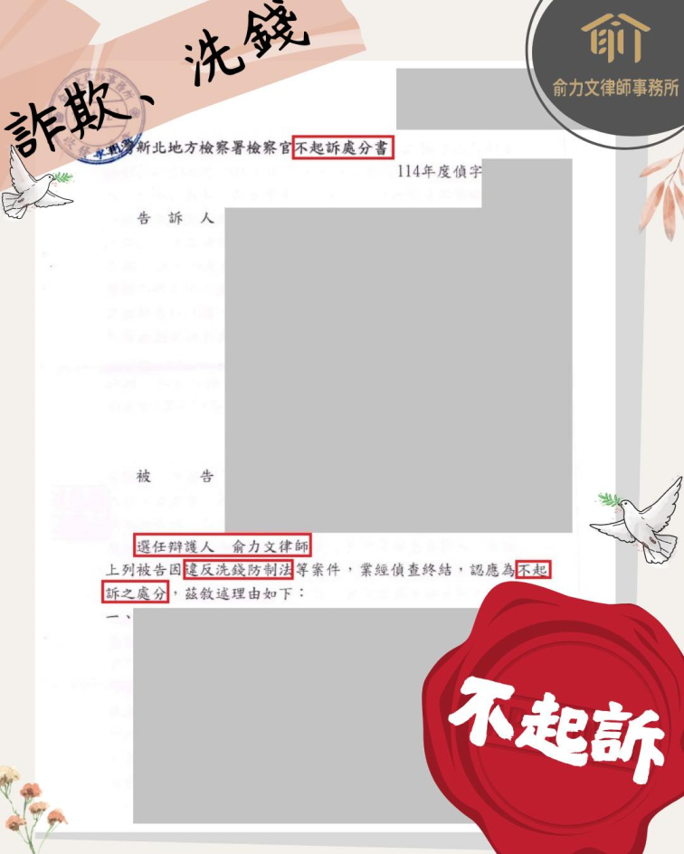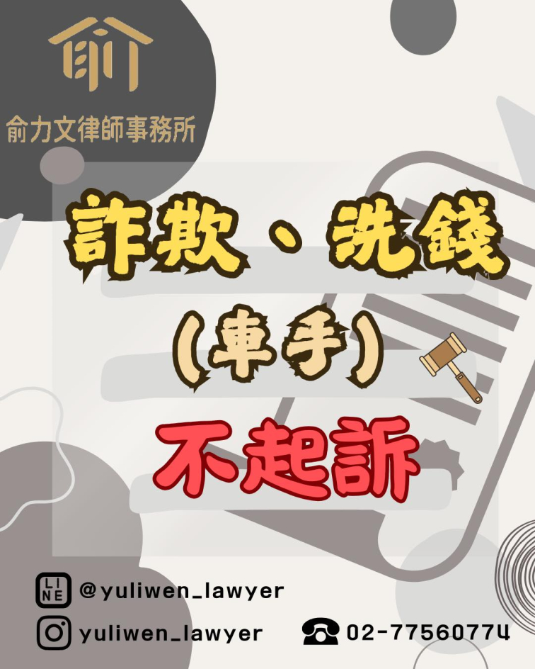 #線上諮詢 #俞力文律師事務所 #成功案例 #刑事律師 #刑事案件 #24小時委任律師相關問題 #勝訴 #24小時緊急陪偵 #詐欺取財 #洗錢 #詐欺案件 #法律諮詢 #詐欺罪 #詐騙集團 #洗錢防制法 #不起訴 #車手不起訴 #不起訴處分