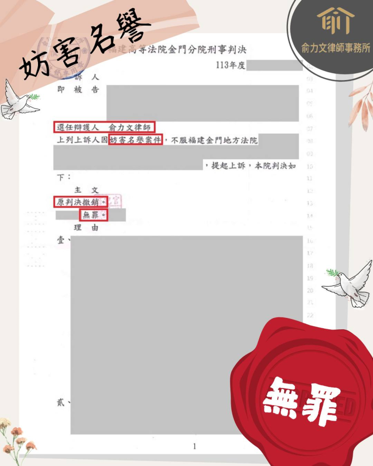 #無罪 #無罪推定 #無罪判決 #無罪釋放 #上訴 #上訴成功 #上訴二審 #妨害名譽