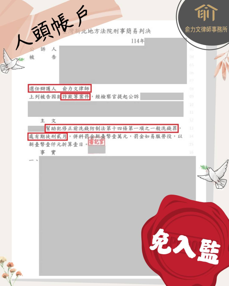 免入監❗️未和解 ❗️【人頭帳戶、幫助詐欺】未和解 ‧ 成功免入監|專精詐欺、洗錢、人頭帳戶、車手、幣商等案件