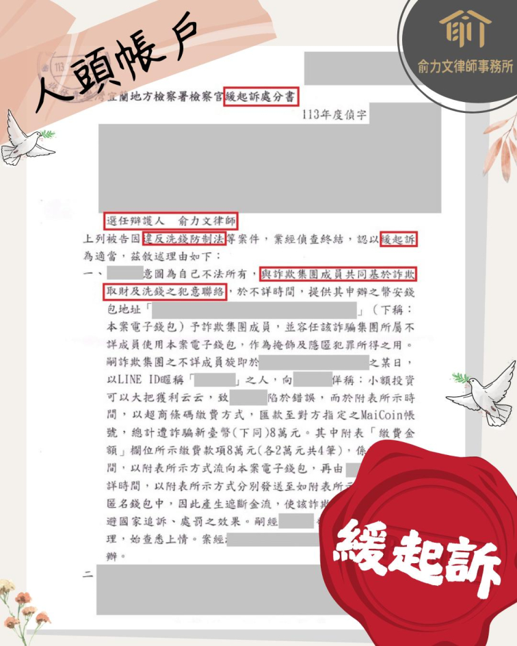 【人頭帳戶(販賣帳戶)】— 成功爭取緩起訴