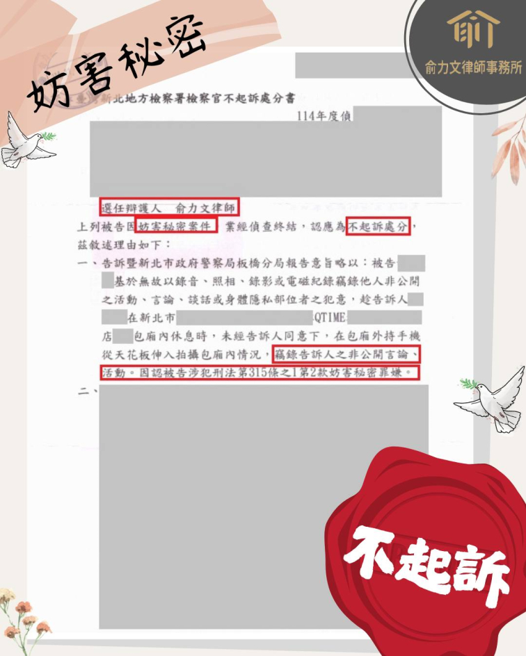 成功案例分享|妨害秘密罪不起訴|偷拍案件成功爭取不起訴處分